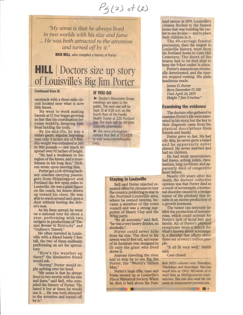 Who Was Jim Porter? (On display at Portland Museum) (Jim Porter is buried in Cave Hill Cemetery) Share this: Click to share on X (Opens in new window) X Click to share on Facebook (Opens in new window) Facebook Like Loading...